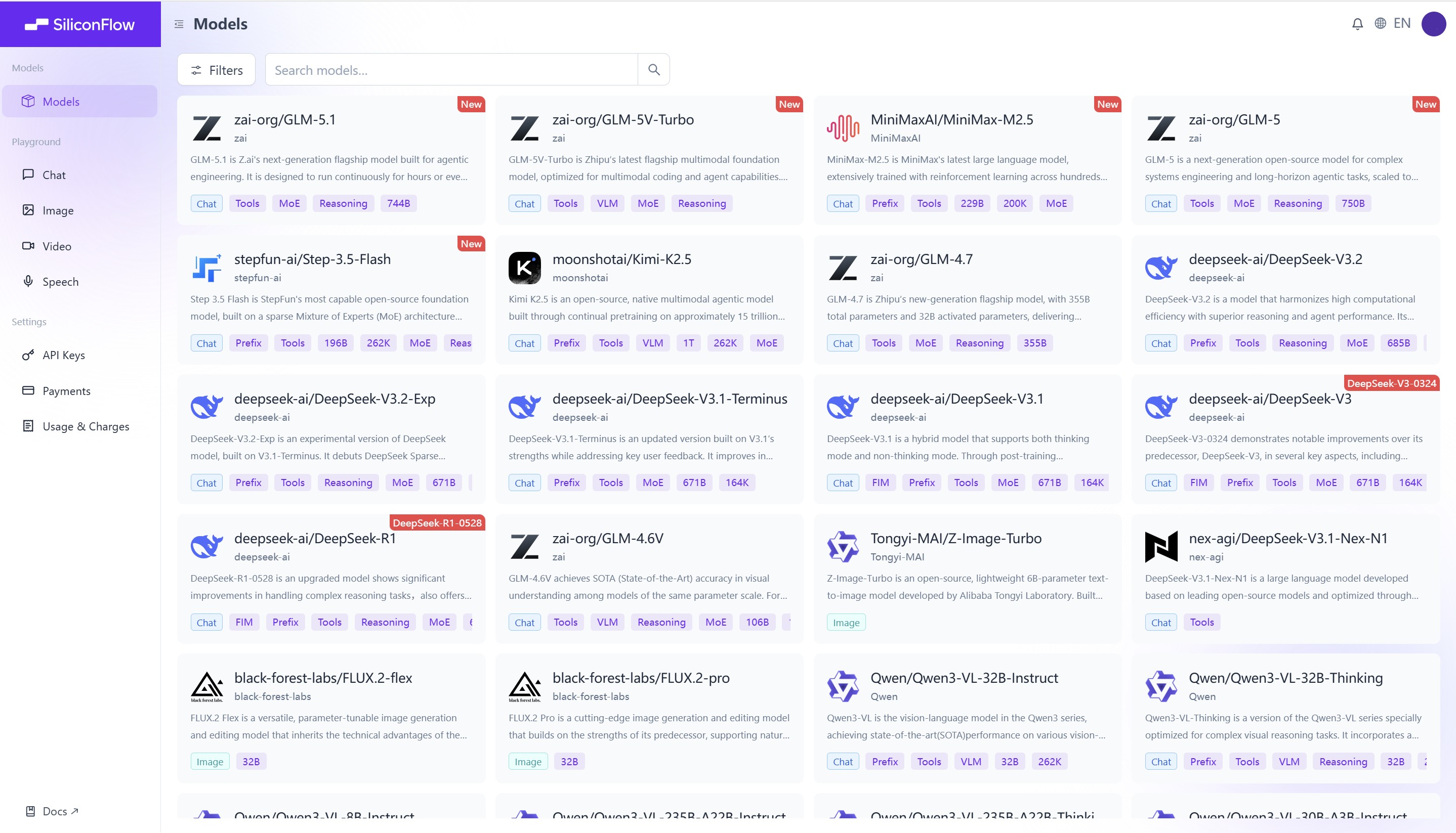 Model Library: https://siliconflow.com/models