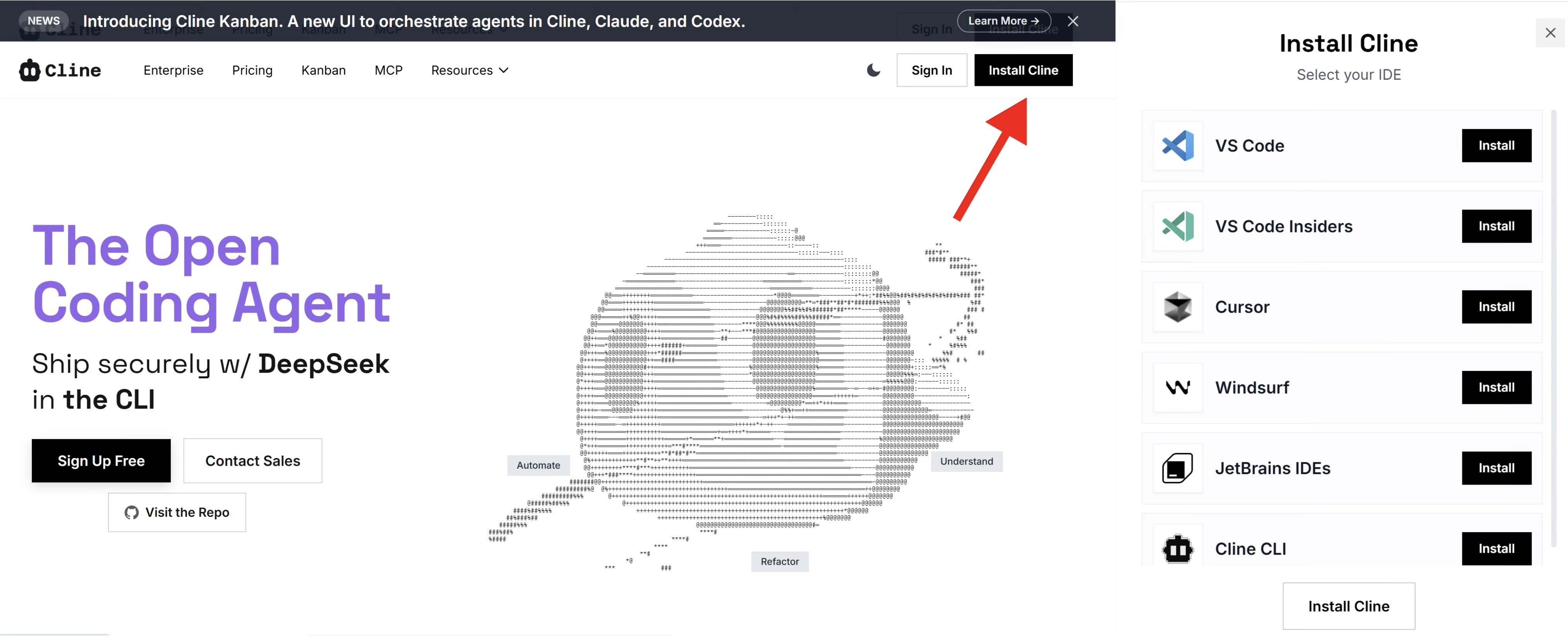 Visit the official Cline website: https://cline.bot