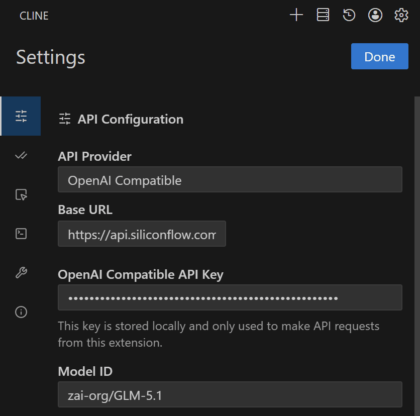 To get started, you'll need to connect Cline to an external LLM API. In this guide, we'll show you how to integrate SiliconFlow's APIs into Cline, giving you access to frontier coding models like GLM-5.1, MiniMax M2.5, and Kimi K2.5 at cost-effective pricing.