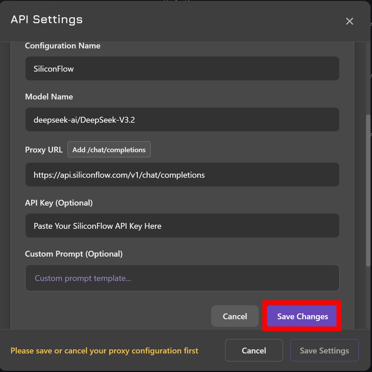Proxy URL: https://api.siliconflow.com/v1/chat/completions