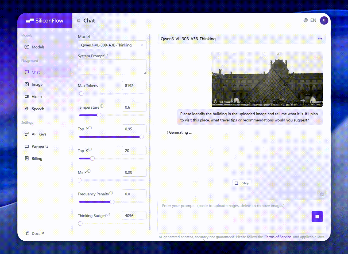 通過SiliconFlow的Qwen3-VL API,您可以期待: